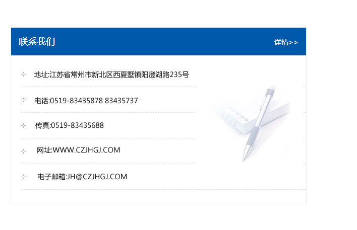 地址:常州市新北區友邦商務大廈1幢16、17層  電話:0519-85101652  傳真:0519-85112595  郵編:213022  網址:www.cz-jiayue_cn.hcchrs.com  郵箱:xiajifengaa@163.com